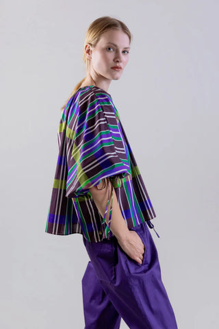 Bettina Silk Georgette V-Neck Shell Top with Grograin Trim